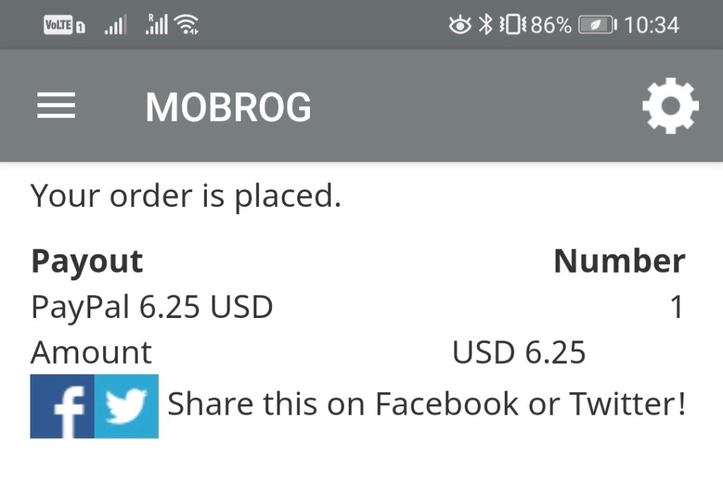 New app payout! This app pays out fast… I just start on the 14th Feb and got paid on 19th Feb – for USD 6.25, which is the minimum. It’s called MOBROG. Just about 4 surveys to first payout.