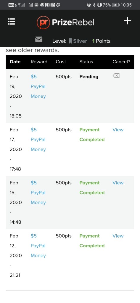 Here’s my 4th payout from prizerebel, 20 USD in 8 days.
