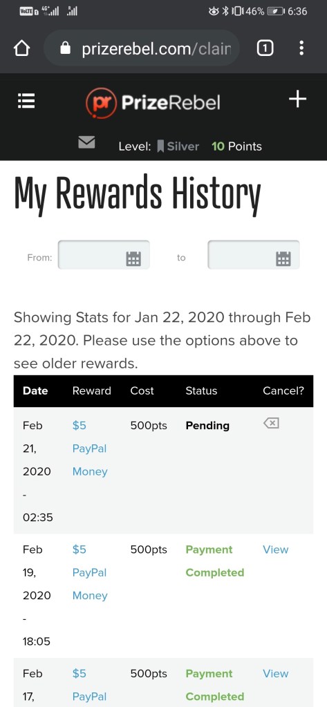 Also, I’ve received 5 USD payout from prizerebel. This website is quite consistent. It just takes time and patience. Don’t try too hard to hit the points and just check back regularly for surveys. I would set the mark as 3-4 days per payout of 5 USD.